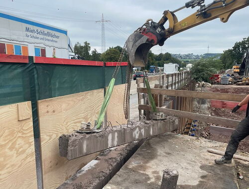 An einer Bahntrasse der Deutschen Bahn wurde ein Stahlbetonbauwerk mithilfe einer Seilsäge präzise aufgeschnitten.