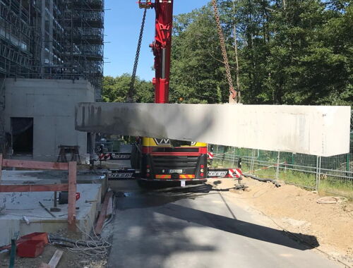 An einem Hochbunker in Oberhausen, mussten wir einen großformatigen Betonerker mittels Seilsäge und 500 t abschneiden.