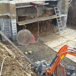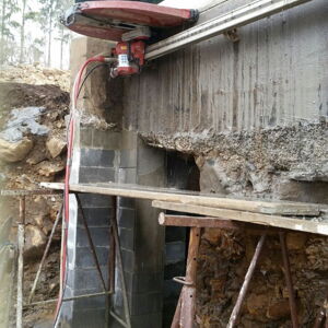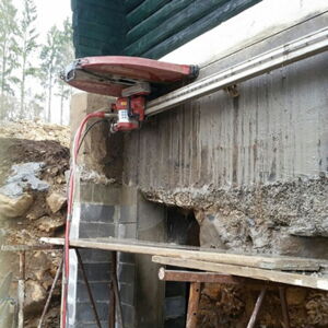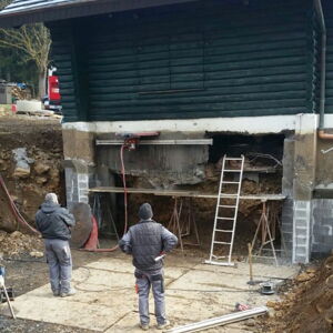Im Westerwald mussten die Betonfundamente horizontal von diesem vollständig abgetrennt werden. Da das Holzhaus zerlegt und abtransportiert werden sollte.